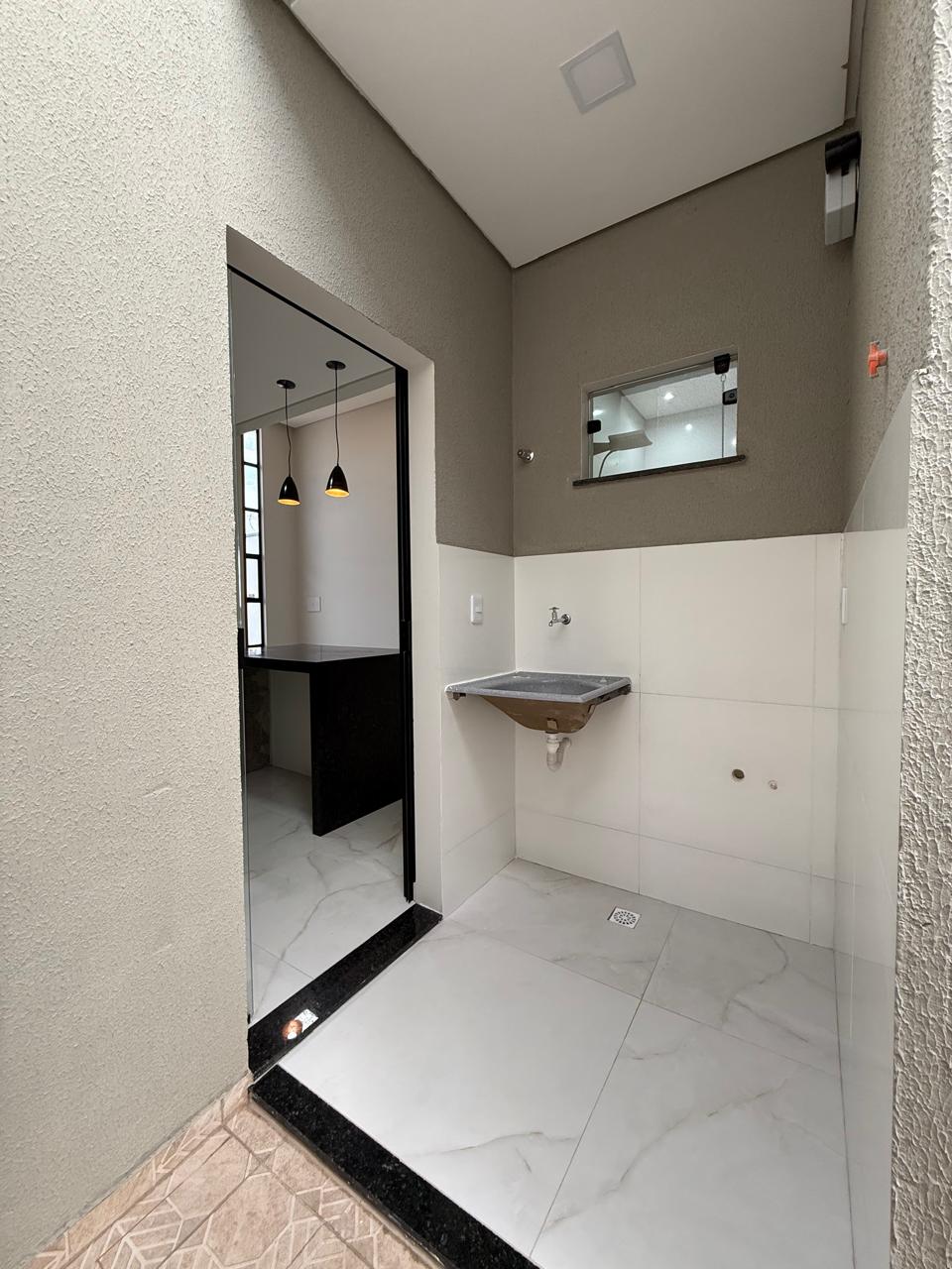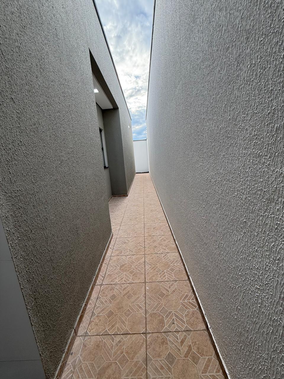 O imóvel está construído em um lote de 6 x 25 metros, com 102 m² de área construída, totalmente na laje e com pé-direito duplo, garantindo maior iluminação natural e ventilação.