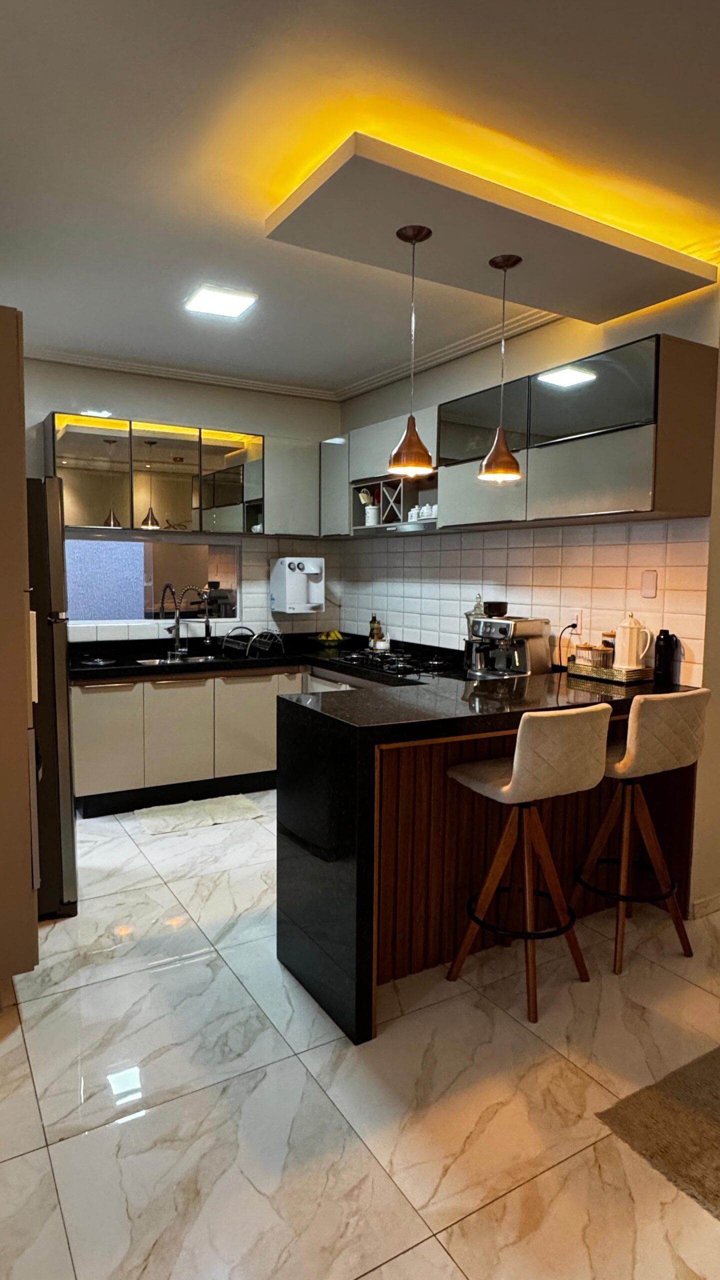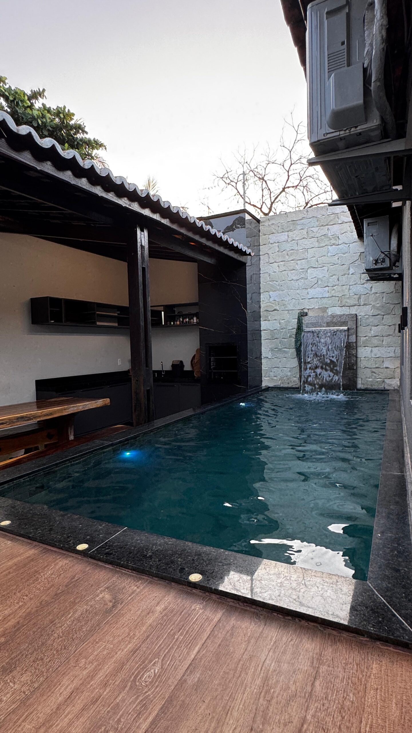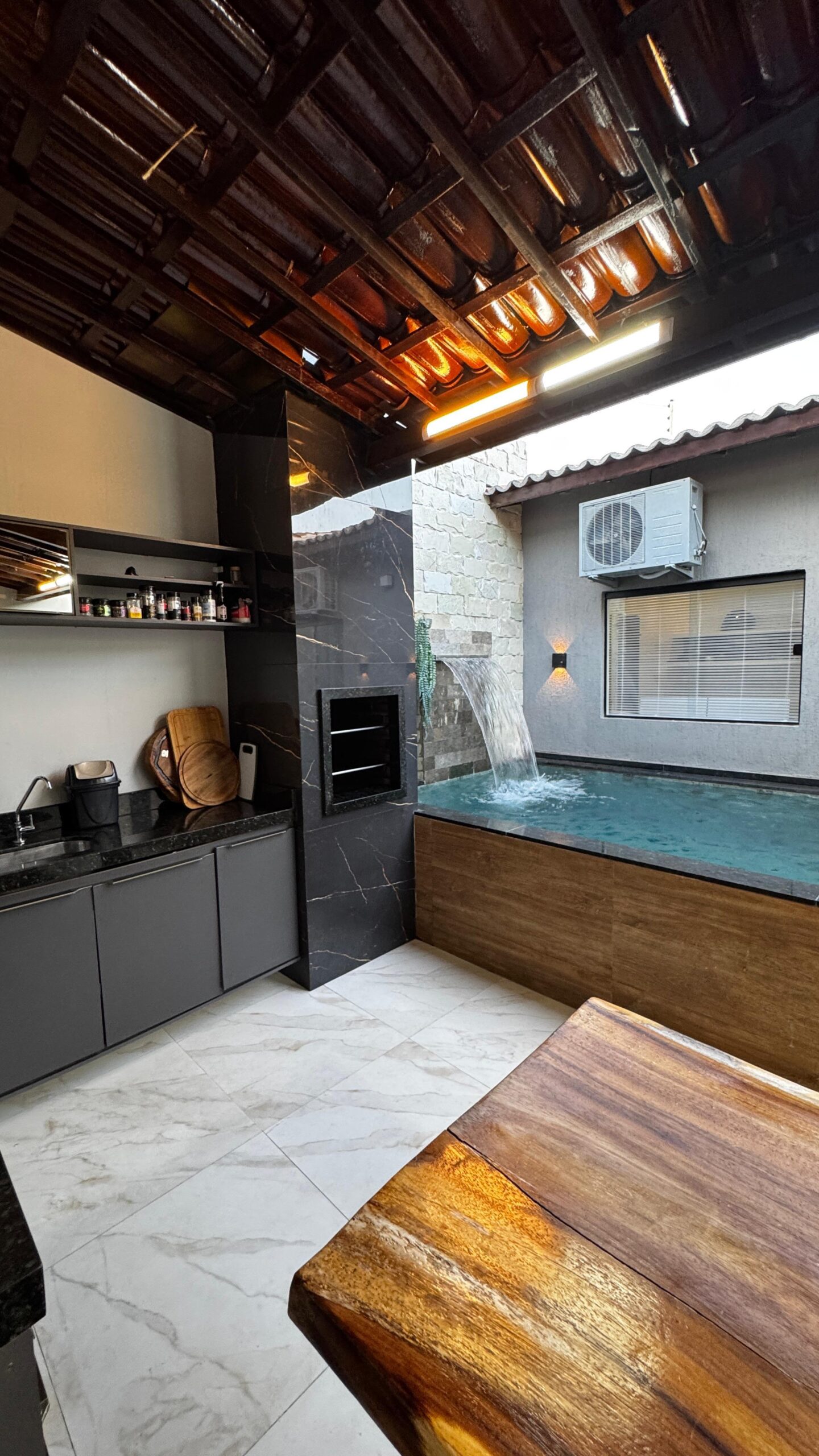 Conta com área gourmet com churrasqueira, piscina com cascata, garagem para 1 carro e excelente padrão de acabamento.