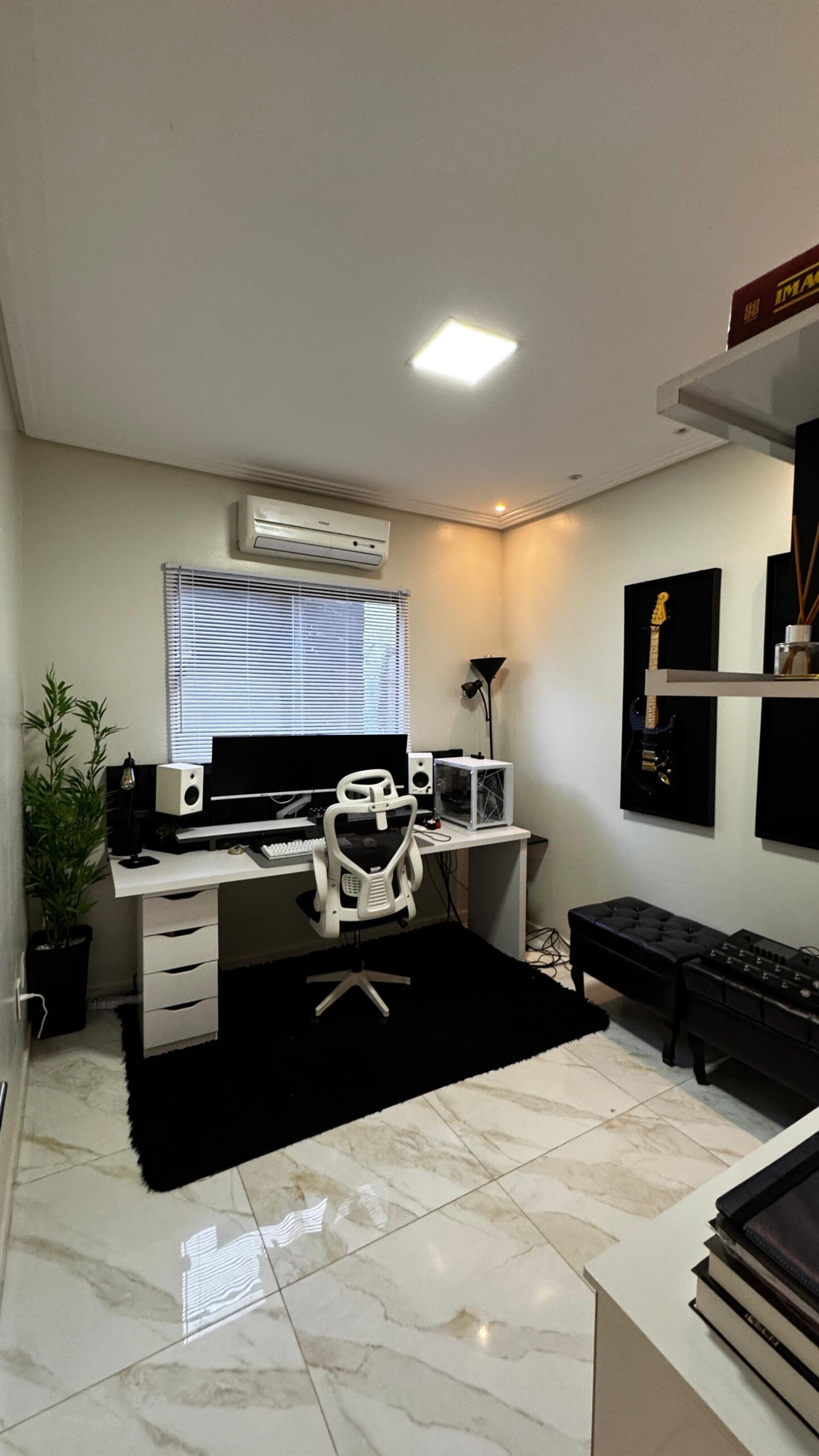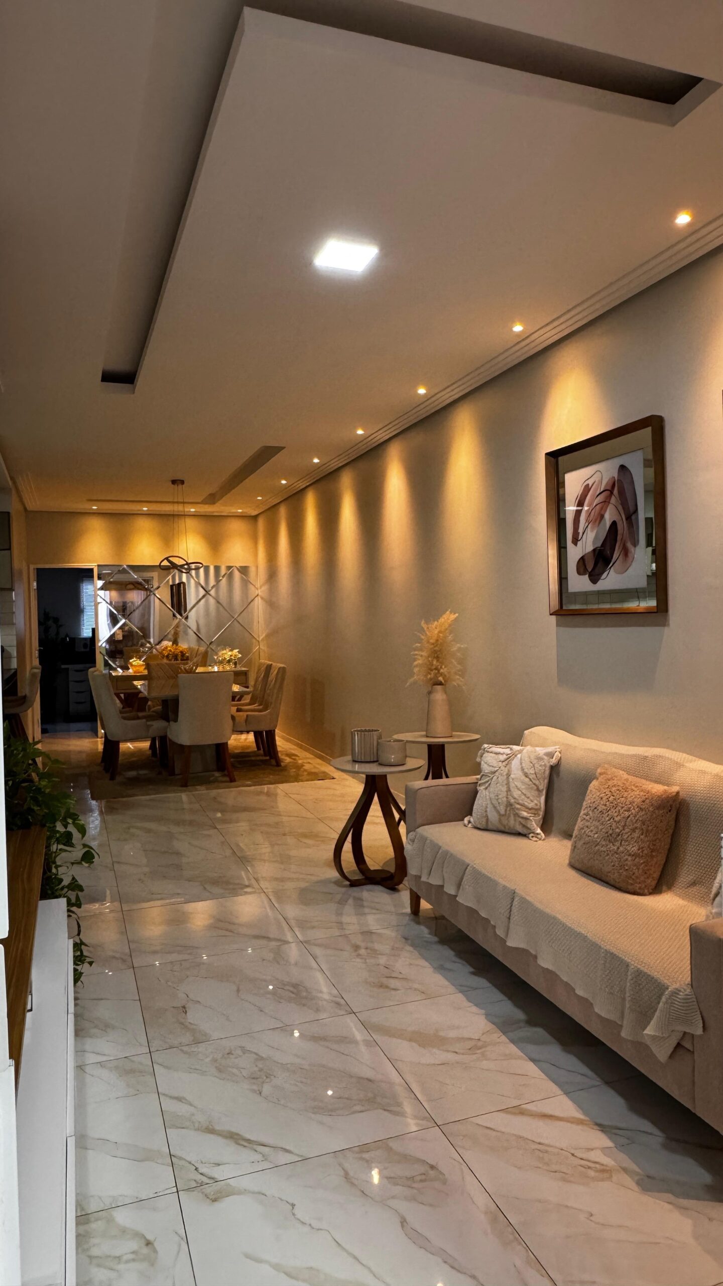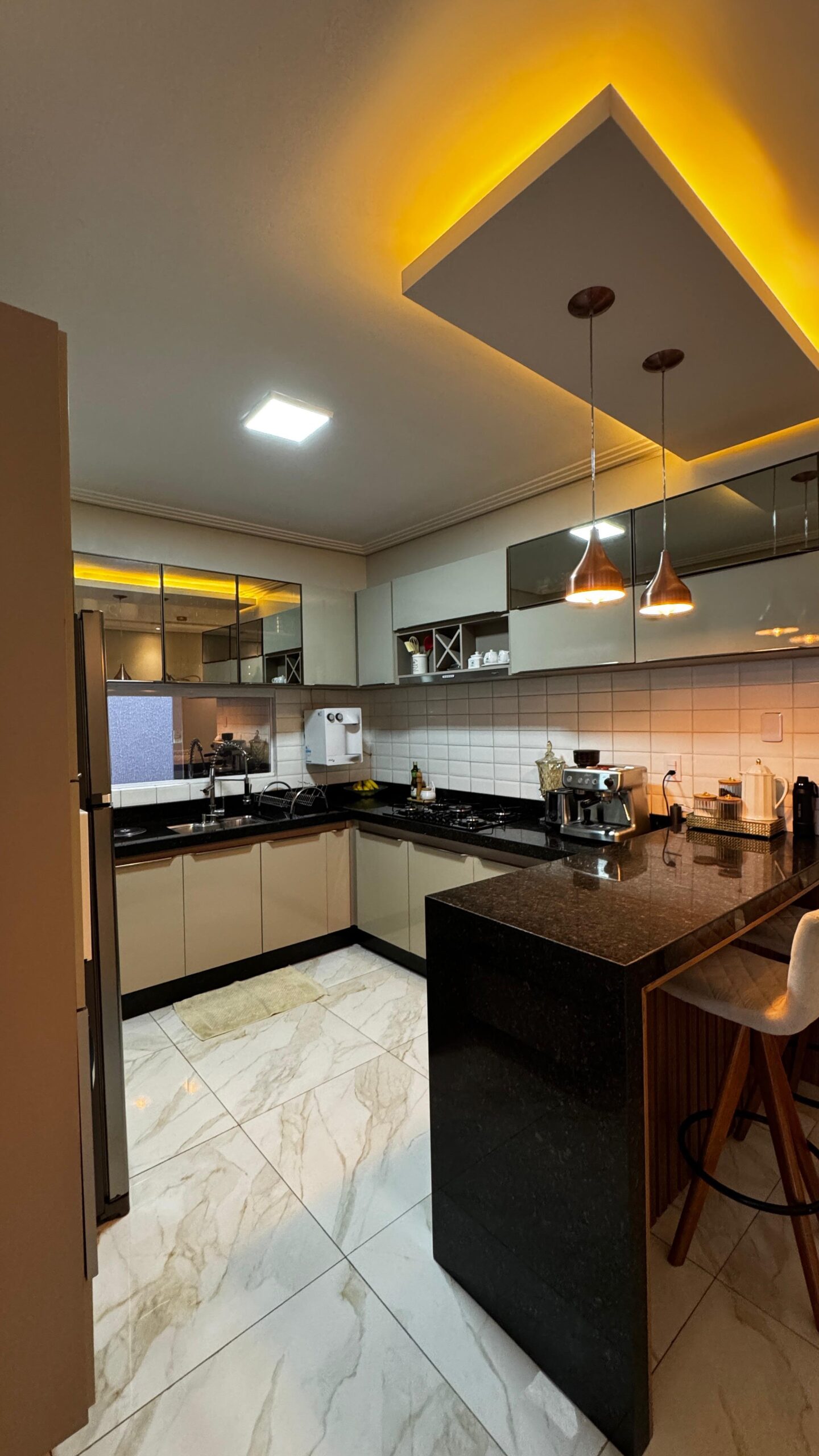 Conta com área gourmet com churrasqueira, piscina com cascata, garagem para 1 carro e excelente padrão de acabamento.