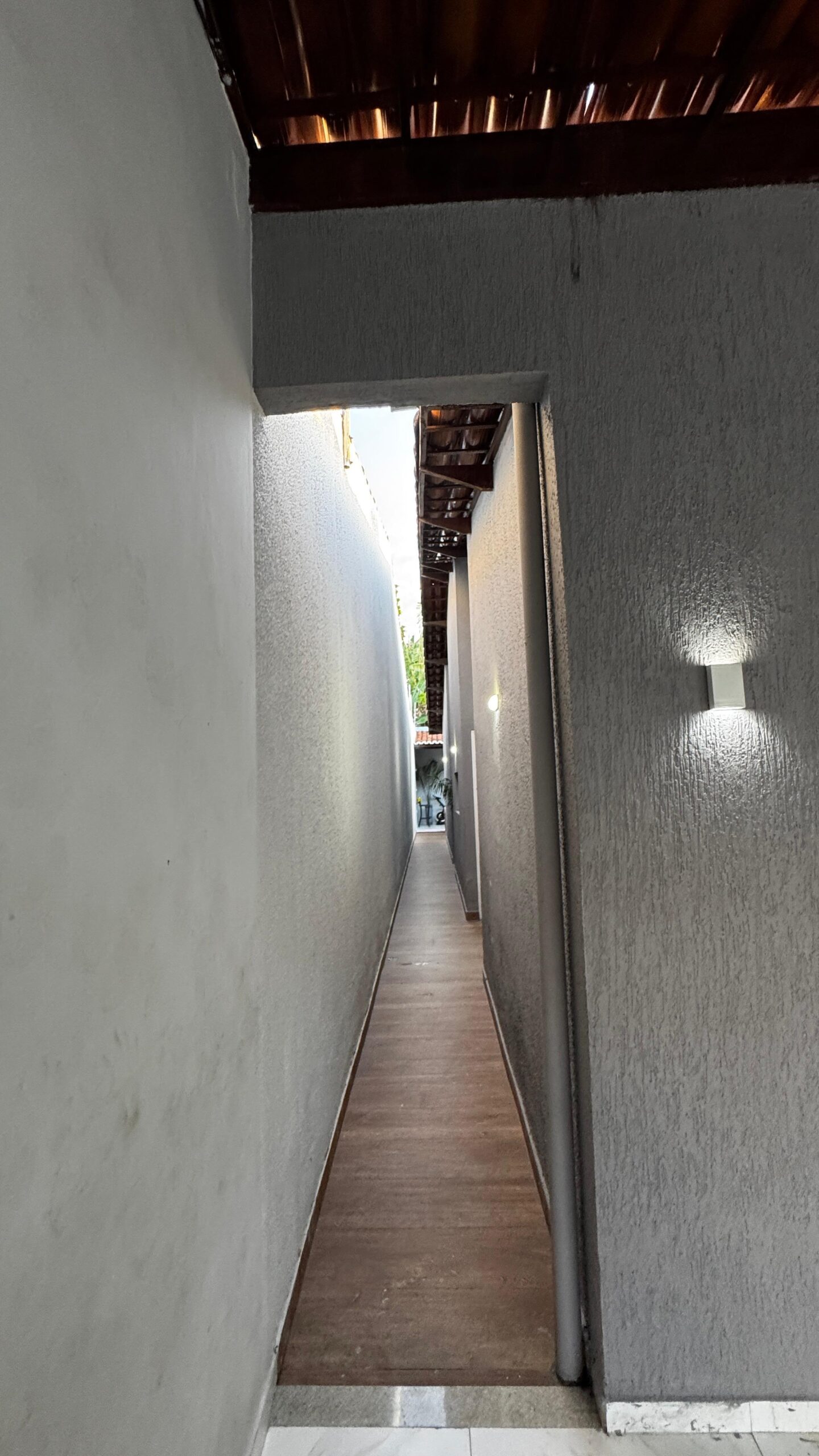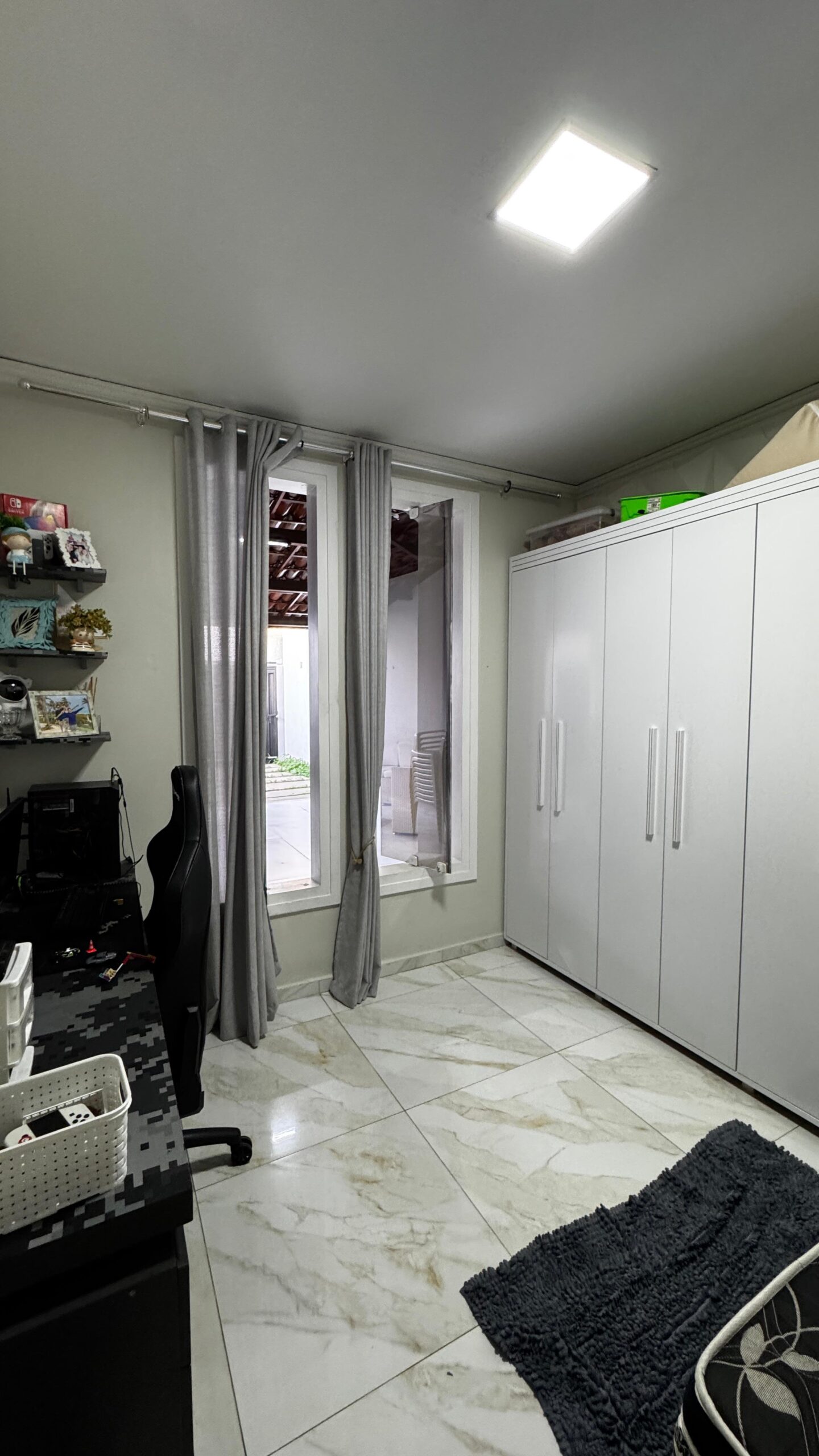 Construído em terreno de 7 x 30 metros, o imóvel possui 3 quartos, sendo 1 suíte, banheiro social, sala de estar/jantar integrada e cozinha funcional.