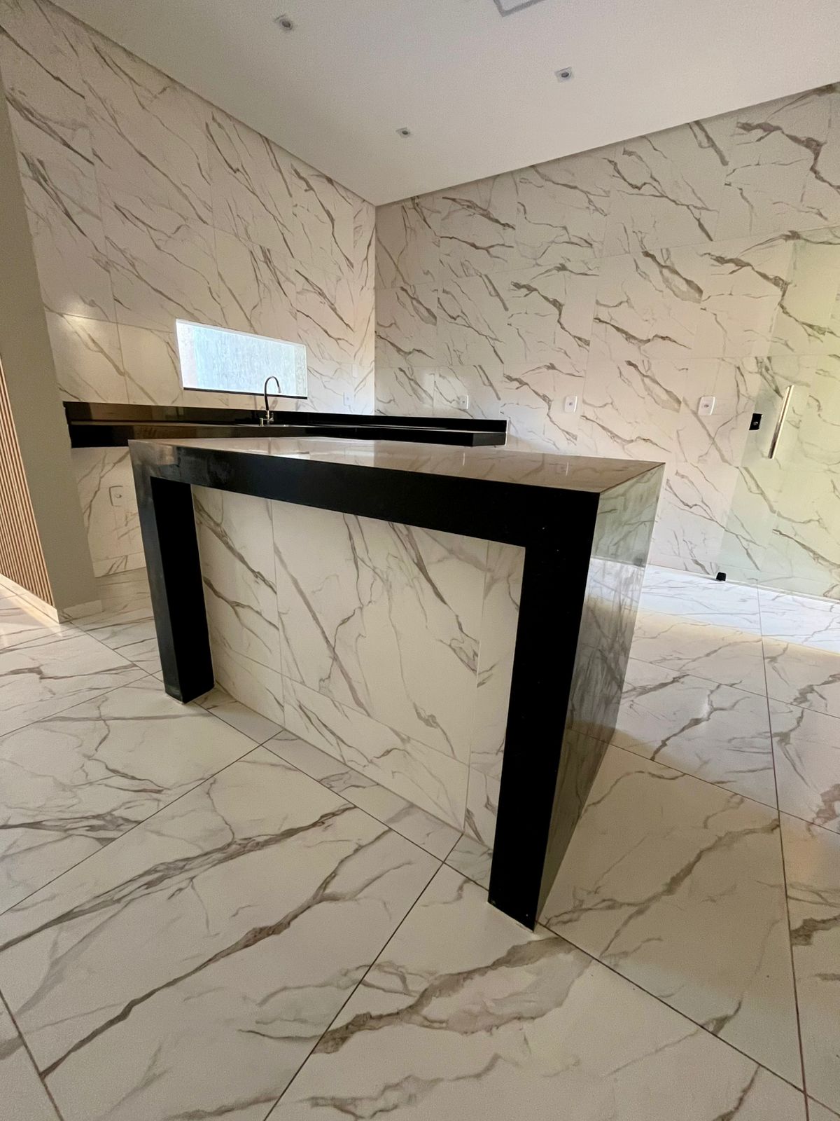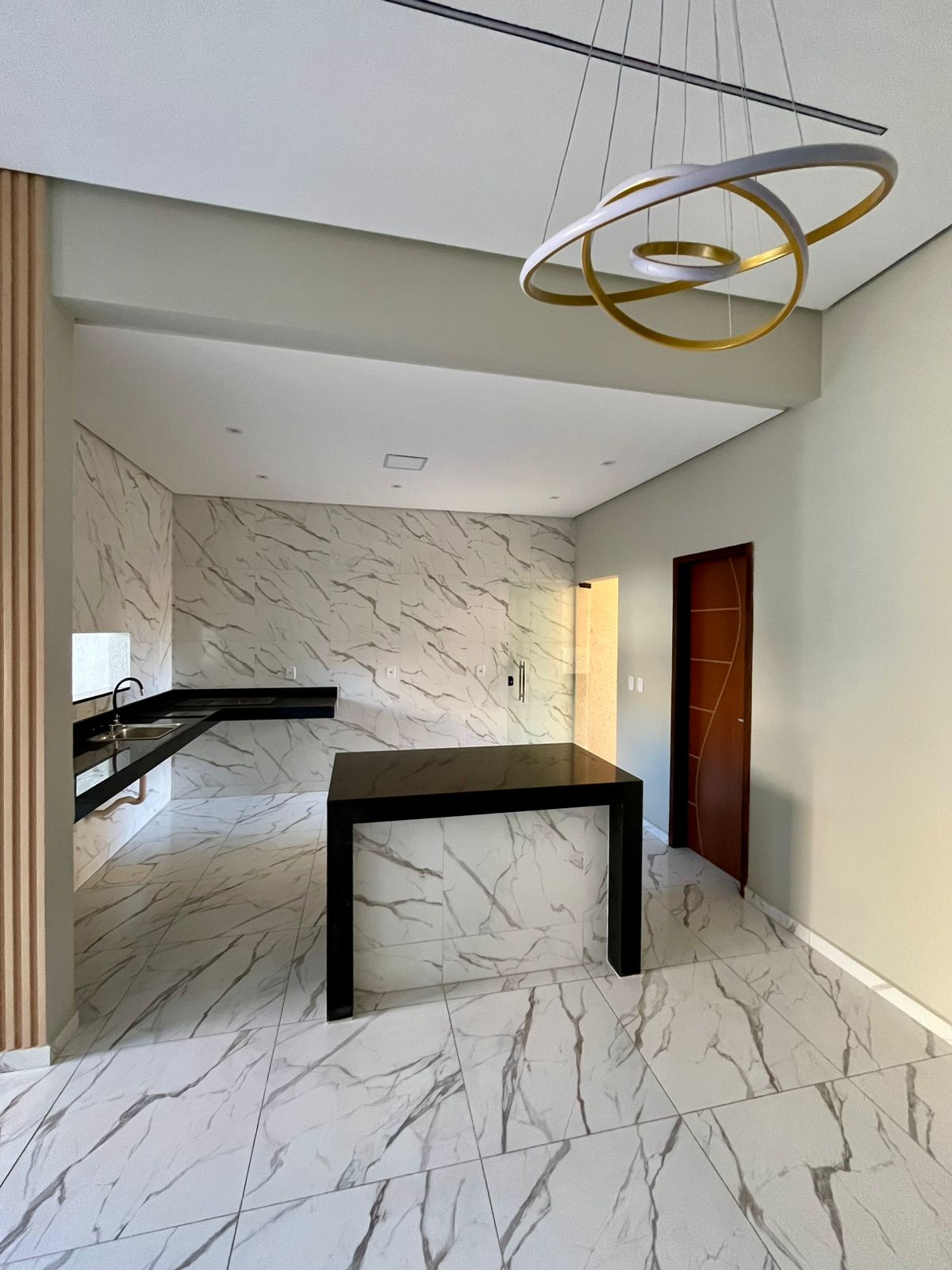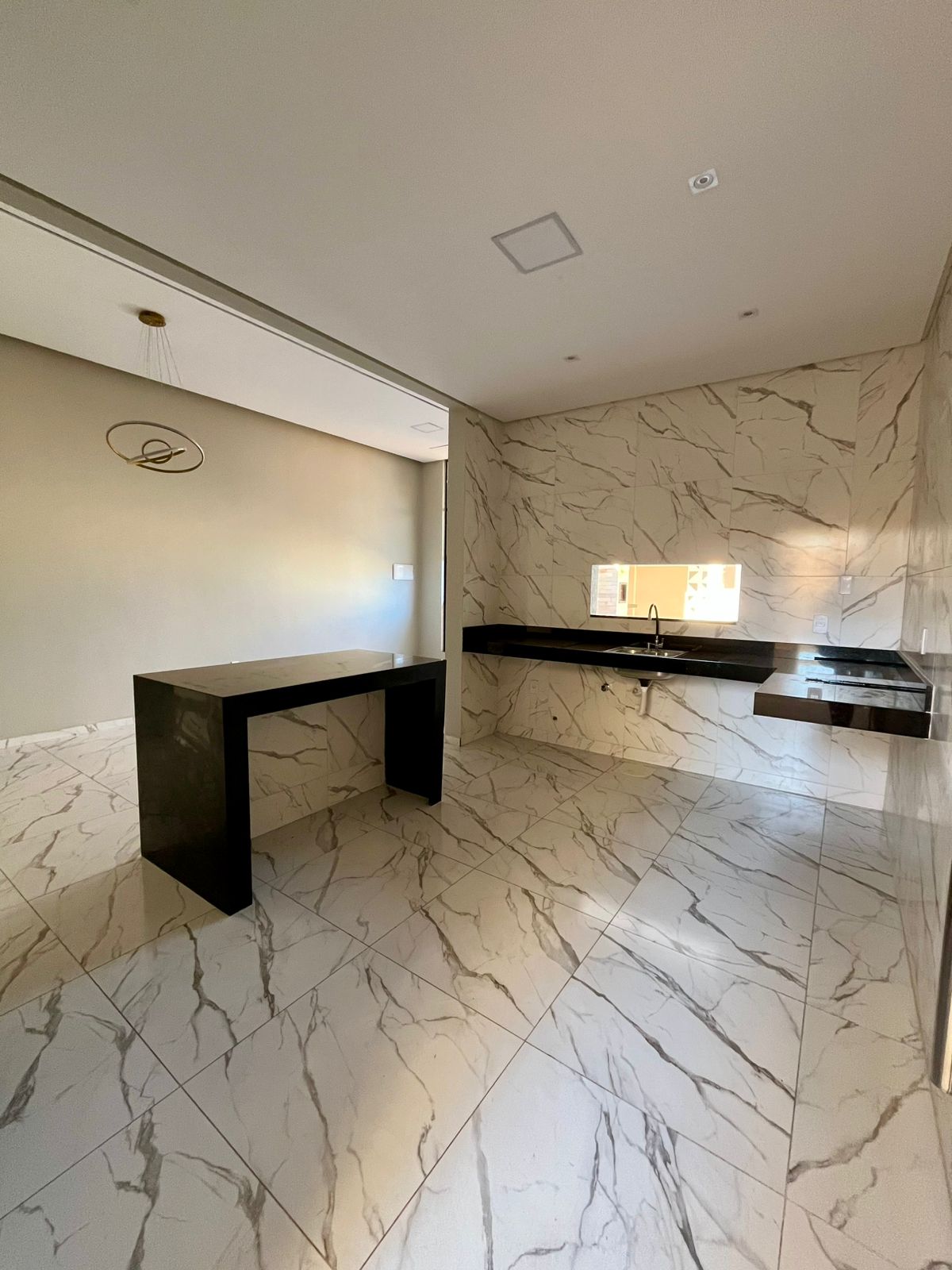 - Cozinha com balcão e ilha em mármore Preto São Gabriel