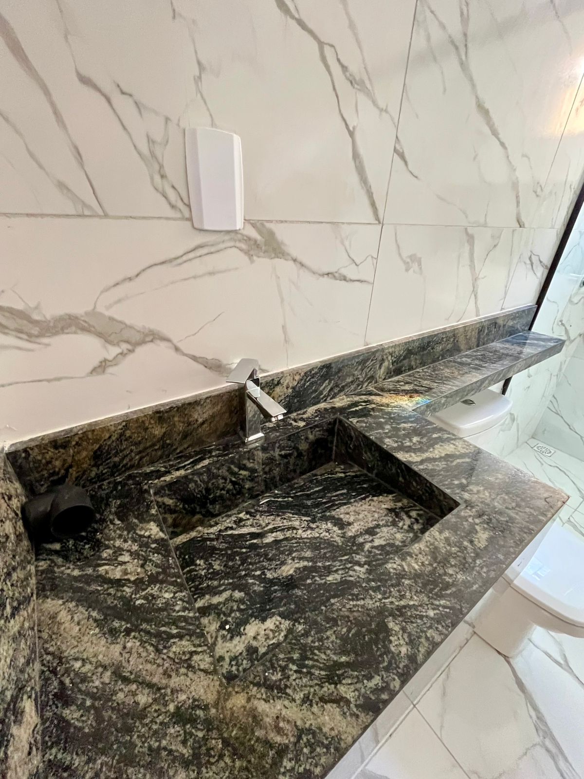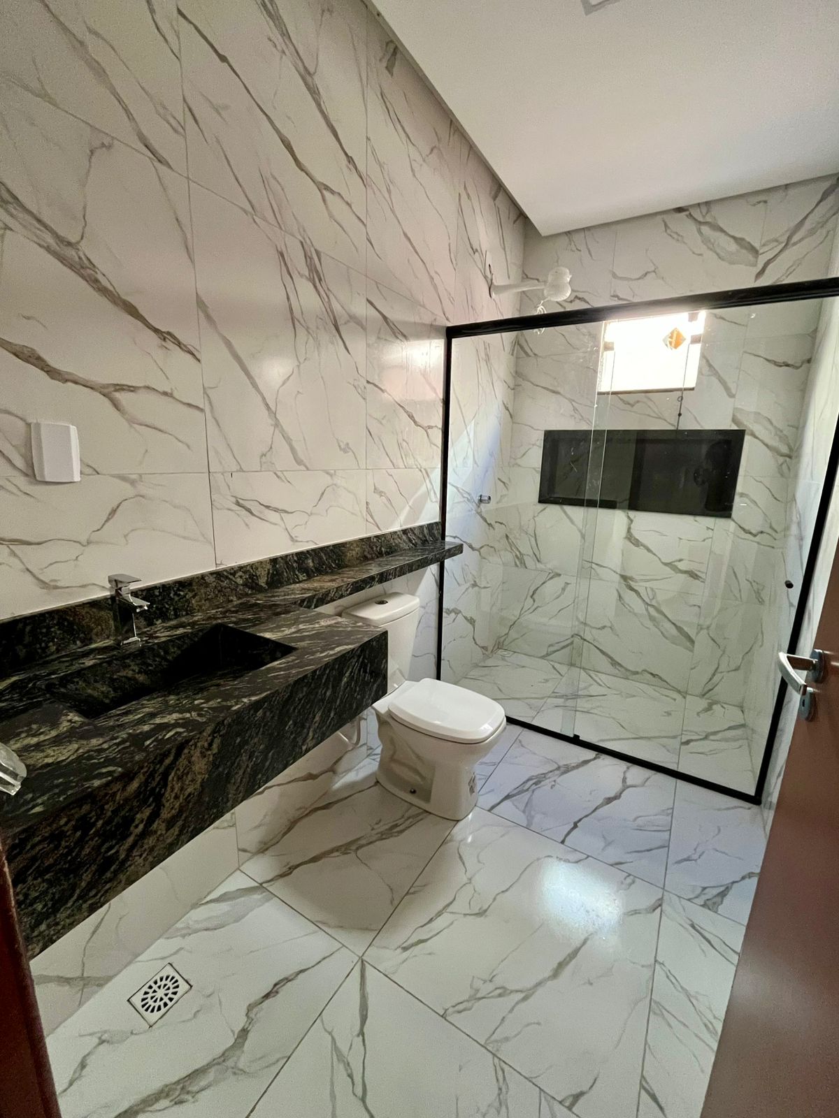- Banheiros com nicho em granito e pias esculpidas