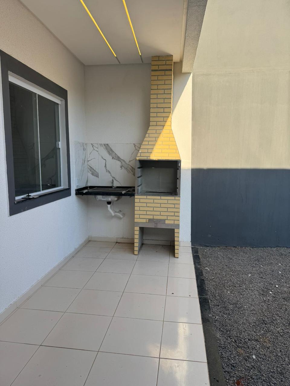 Área gourmet externa com pia em granito Verde Ubatuba e churrasqueira pré-moldada. Possui cerca elétrica (sem central de choque), fachada em textura e calçada em bloquete pré-moldado.