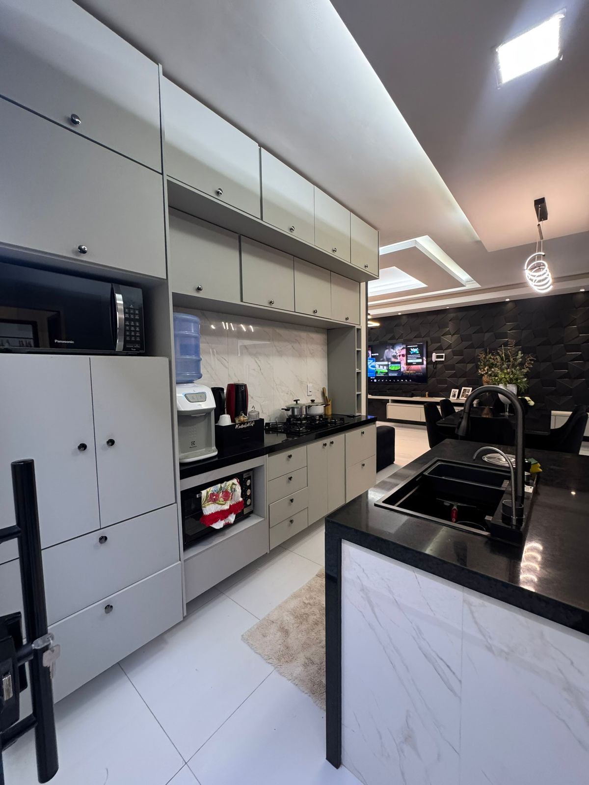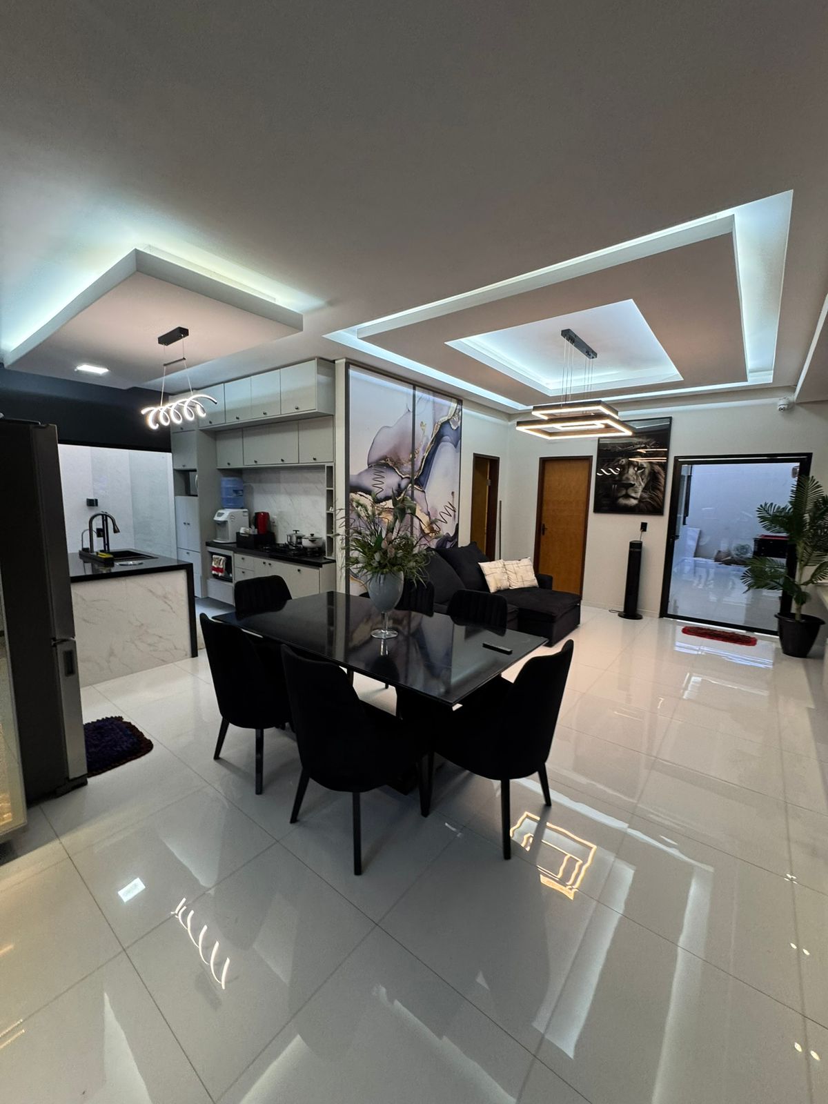 O imóvel conta com 3 quartos, todos suítes, garantindo total privacidade aos moradores. A área de lazer é um dos grandes diferenciais, com piscina de 10 m x 4,5 m equipada com jacuzzi, integrada a uma área gourmet completa, ideal para receber amigos e familiares com conforto e estilo.