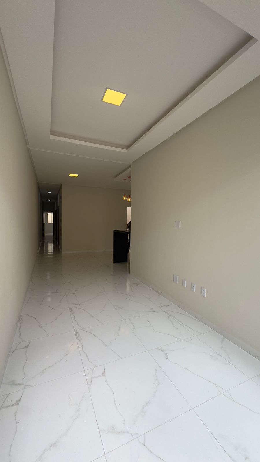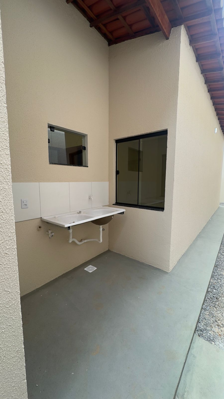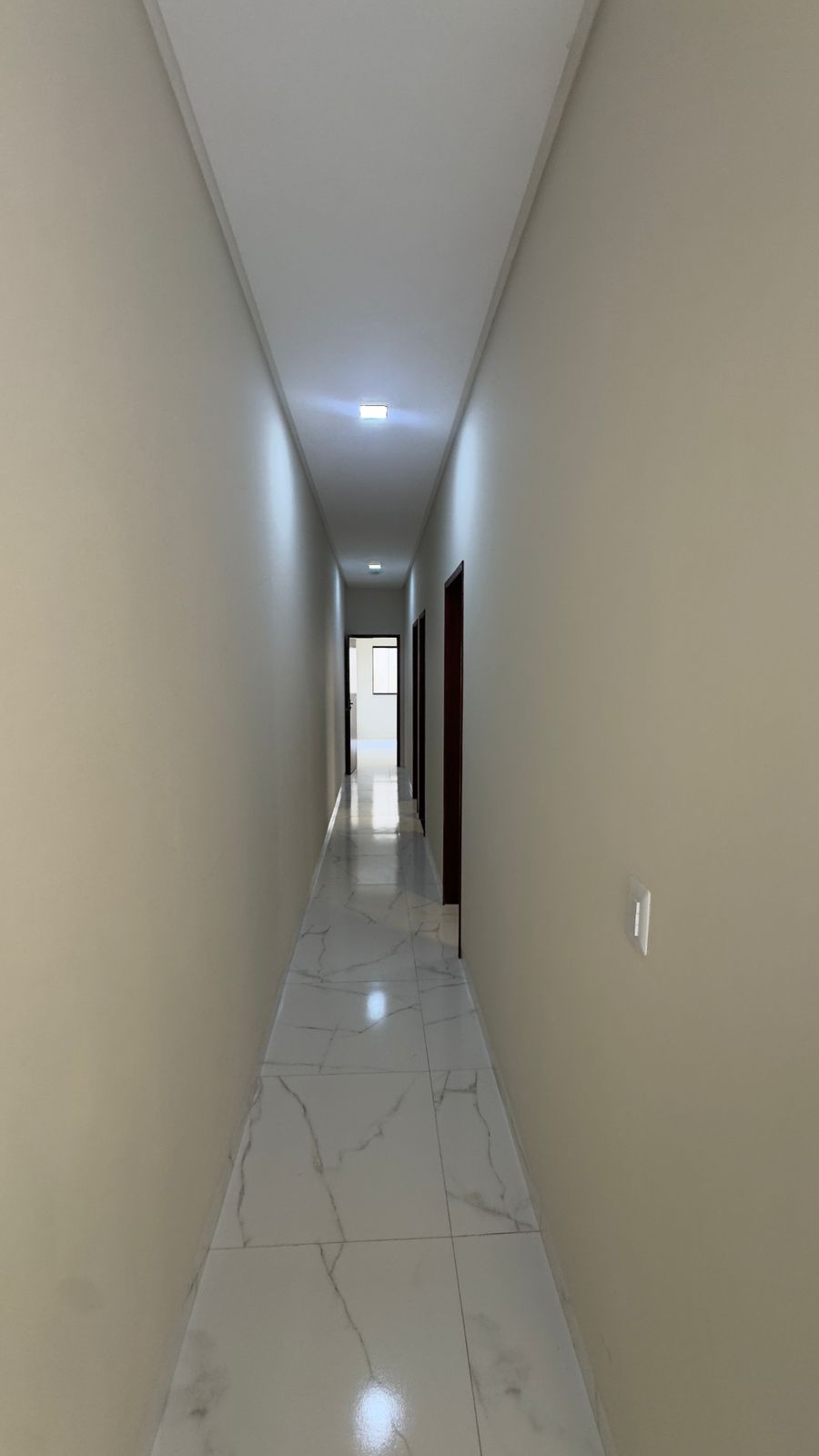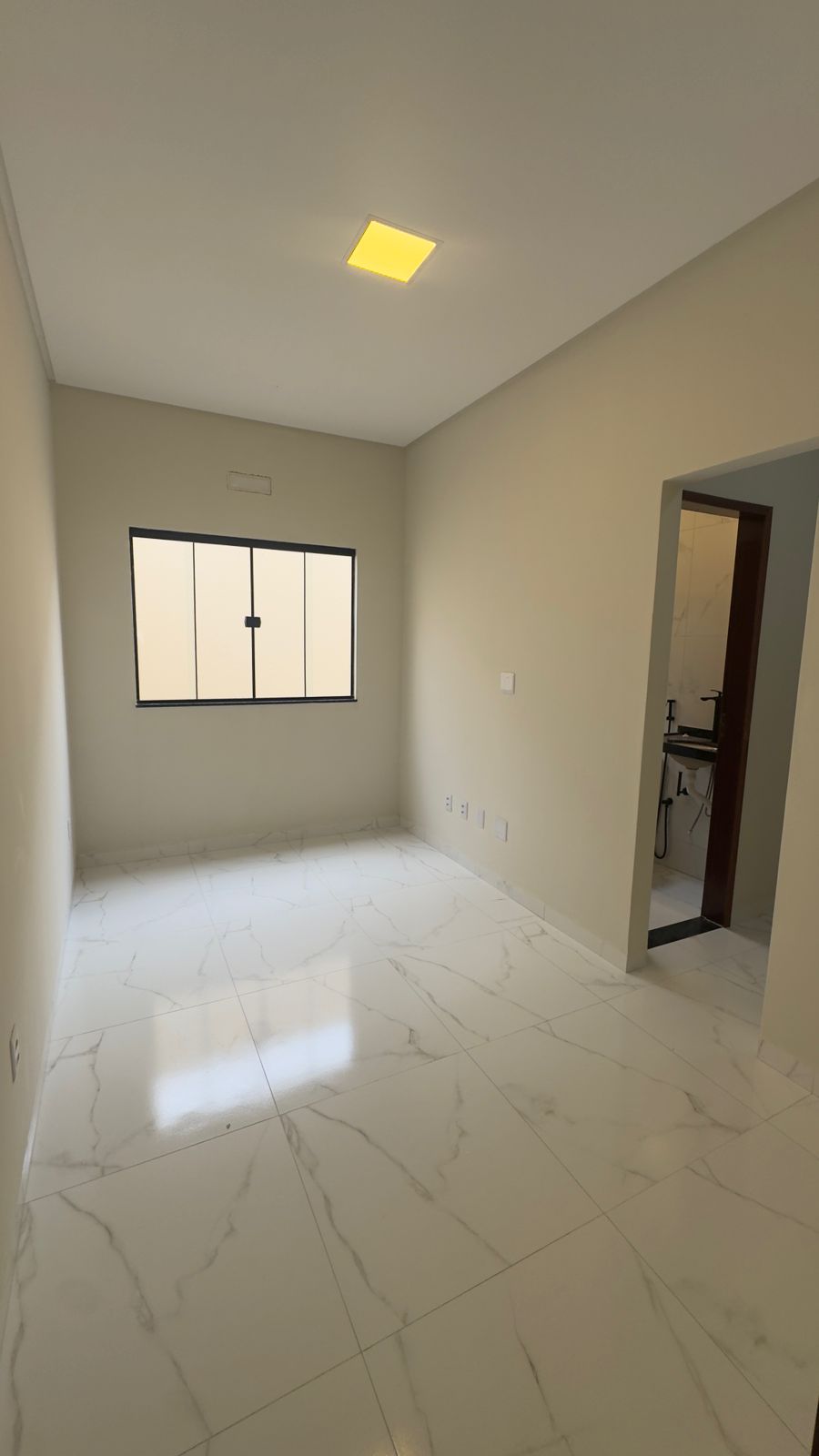 Construído em um lote de 5 x 26 metros, o imóvel conta com 3 quartos, sendo 2 suítes (1 reversível e 1 com closet), além de banheiro social.