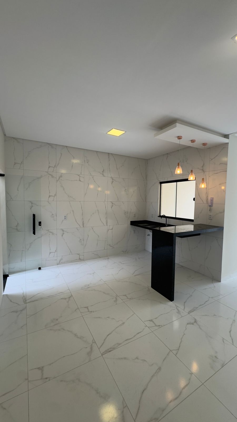 Possui piso em porcelanato 72×72, bancada e balcão em granito Verde Ubatuba, banheiros com box instalados, lavanderia, portas de vidro temperado e portão automático.