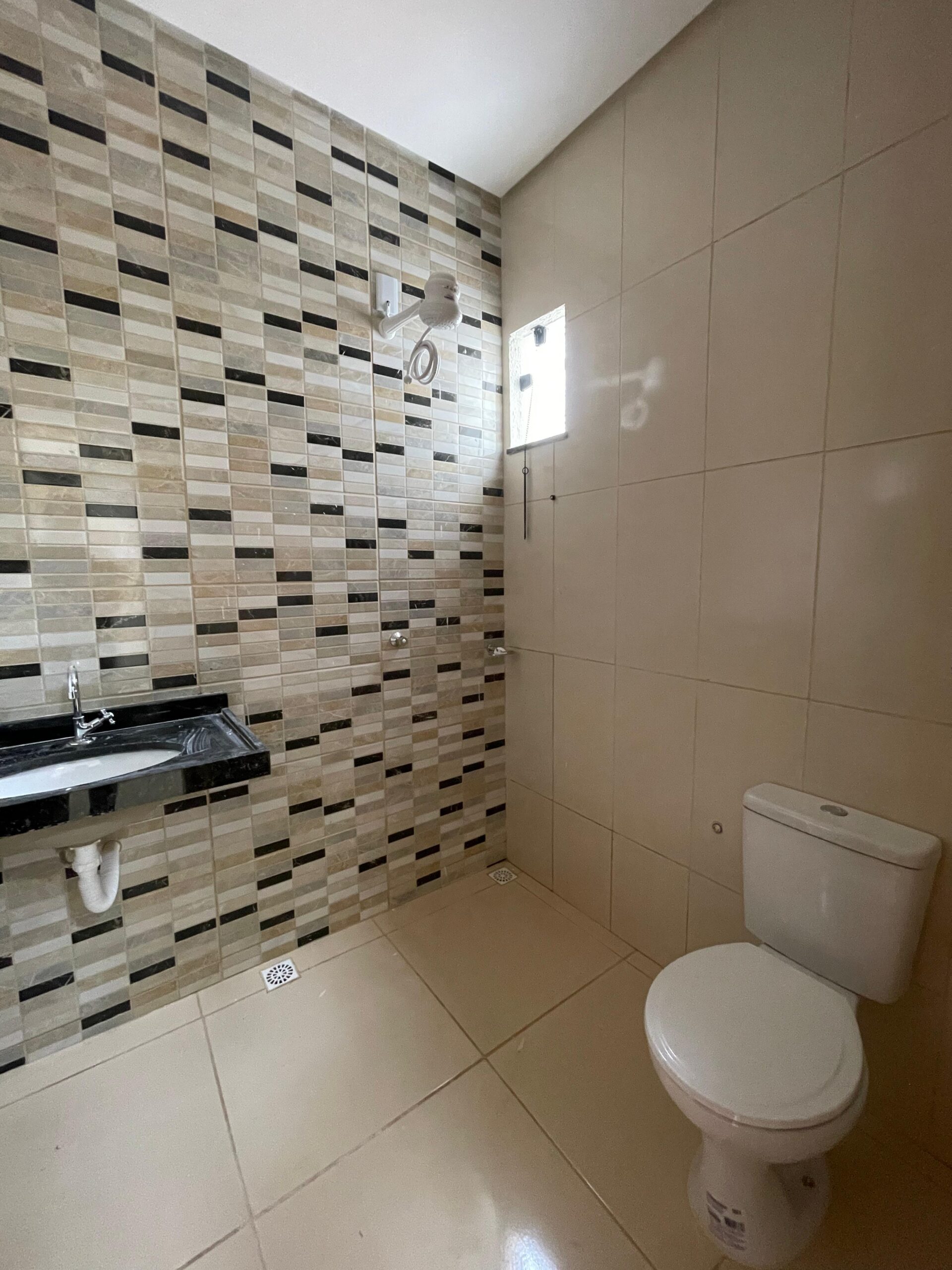 São 3 quartos, sendo 1 suíte, 1 suíte reversível e 1 quarto padrão. A casa é coberta com madeira maçaranduba, possui revestimento em cerâmica e conta com porta e portão externos em ferro modelo telha, garantindo durabilidade e segurança.